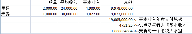 我们可以作以下假设来简化计算。先把报名参与领取基本收入的4000人算作2000个单身人士和1000个家庭。再把其中单身人士的平均年收入假设为$24,000,并把一个家庭的年收入假设为$30,000。基于以上假设,安省一年需要为OBIP项目的基本收入部分(管理费等不计)支付1900万元,平均一个参与者一年可以获得$4751。安省并未加增额外的省税来填补这一项支出,相当于从现有的安省财政收入中支付,平均到安省每一个25岁及以上的纳税人为$1.87。因此,单从OBIP试点的角度来看,不会给安省带来很大的财务负担,而对于收到OBIP支票的参与者,每年$4751的额外收入确实能显著改善生活条件。