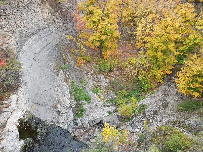 Albion瀑布曾经是Hamilton地区婚纱摄影的热门外景地之一。网上有很多Albion和Buttermilk瀑布的照片。最佳观景位置是瀑布的底部,不但能感受到从天而降的水流,也能近距离观赏底层断裂带的壮观景象。但是非常可惜,由于前往瀑布底部的道路比较陡峭,并随时可能发生岩石滚落,这些山路的入口已经被全部关闭。