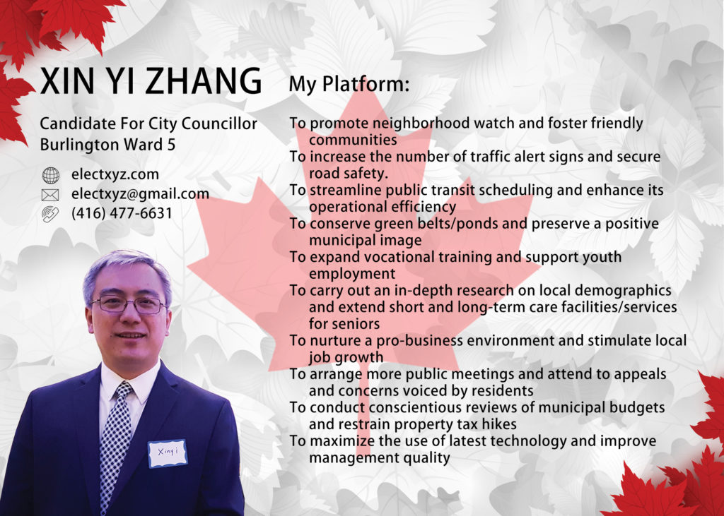 2018年我参加了Burlington市选,竞争Ward5市/地区议员。 首先需要声明,选举已经结束,祝贺Paul Sharman先生连任。我要感谢所有在竞选活动中帮助过我的义工,支持者,和发信来鼓励我的朋友们。希望大家一起把建设发展Burlington的建议和意见与这一届市议会成员商讨。让我们一起为建设自己的社区,自己的城市献计献策。以下内容仅仅作为本人参加竞选的回顾与总结。